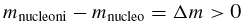 Se si misurano la massa di un nucleo e la somma delle masse dei suoi componenti isolati (cioè liberi) si ottiene un risultato apparentemente sorprendente, cioè che la somma delle masse dei nucleoni è sempre maggiore della massa del nucleo nel suo complesso. In realtà questo è spiegabile alla luce dell'equazione di Einstein, se si pensa che all'atto della formazione del nucleo una parte della massa dei nucleoni, cioè la massa mancante, si è trasformata in energia, quella necessaria per tenerli insieme; questa stessa energia è quella che occorre fornire al nucleo per separare i nucleoni, ovvero è l'energia di legame. La differenza, m, tra la somma delle masse dei nucleoni e la massa del nucleo viene detta difetto di massa: