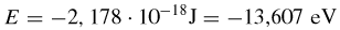 Il primo livello energetico dell'atomo di idrogeno (n = 1) ha un'energia pari a: