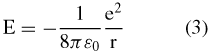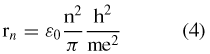 Introducendo a questo punto l'ipotesi di Bohr, secondo cui le orbite possibili dell'elettrone dell'atomo di idrogeno sono quelle per cui il valore del momento angolare vale mvr = nh/2, e inserendo il valore della velocità dell'elettrone ricavato da questa relazione nella (2), si ricava il raggio dell'orbita in funzione del numero n: