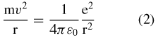 Per ricavare la velocità dell'elettrone che compare in questa formula si utilizza un'equazione di bilancio, che stabilisce che la forza che tiene unito l'elettrone al nucleo, la forza di Coulomb , deve uguagliare la forza centripeta che tende a far uscire l'elettrone dall'orbita, quindi: