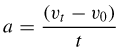 che rappresenta il rapporto tra la variazione della velocità di un corpo e l'intervallo di tempo in cui tale variazione è avvenuta. Nel caso in cui questo rapporto si mantenga costante nel tempo, si potrà parlare di un moto rettilineo uniformemente accelerato; in caso contrario potrà essere parimenti introdotto il concetto di accelerazione istantanea, come limite del rapporto incrementale v/
