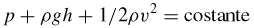 e introducendo la densità del fluido, si ottiene la forma più comune dell'equazione di Bernoulli (o equazione dell'idrodinamica):