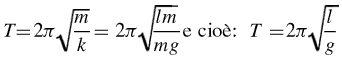 dove, sempre per la piccola ampiezza dell'angolo di oscillazione, il segmento d si può approssimare all'ascissa della massa. A questo punto, usando la relazione tra il periodo T del moto armonico e la costante elastica k si ottiene: