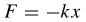 dove k è una costante positiva, detta costante elastica, caratteristica del materiale considerato, e x il vettore spostamento, che nel caso della molla è pari al suo allungamento. Il segno meno indica che la forza ha verso opposto allo spostamento, opponendosi alle deformazioni con un'intensità a loro direttamente proporzionale, tendente a riportare la molla alla lunghezza iniziale.