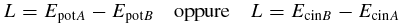 L'energia cinetica e l'energia potenziale di un corpo che si muove sotto l'azione di una forza in genere cambiano valore da istante a istante, a seconda della velocità e della posizione del corpo. Nel caso particolare di un corpo che cade da una determinata altezza e inizialmente possiede una certa energia potenziale, il lavoro compiuto dalla forza gravitazionale per portare il corpo a una quota più bassa è uguale alla differenza dell'energia potenziale del corpo tra i due punti; allo stesso tempo, però, il lavoro delle forze del campo è uguale alla differenza dell'energia cinetica che il corpo acquista nella caduta. Se A è il punto iniziale e B il punto finale, il lavoro si può quindi esprimere come: